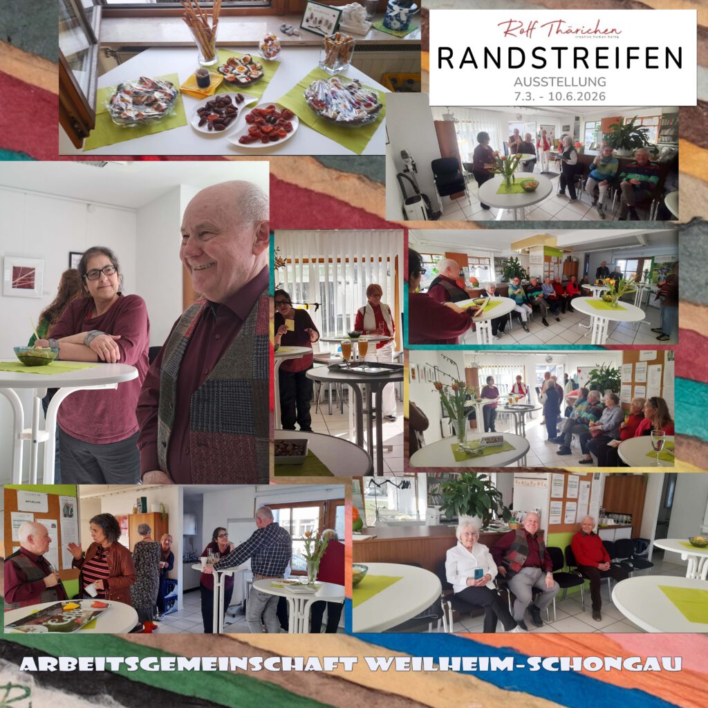 Am Samstag, den 07.03.2026, trafen sich 16 Gäste und der Künstler Rolf Thärichen zur Vernissage mit dem Thema Randstreifen. Es war ein gemütlicher Nachmittag, die Gäste konnten dem Künstler Fragen zu seinen Kunstwerken stellen. Der sympathische Künstler stand Rede und Antwort.